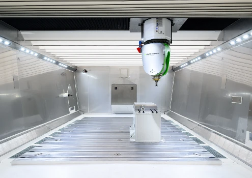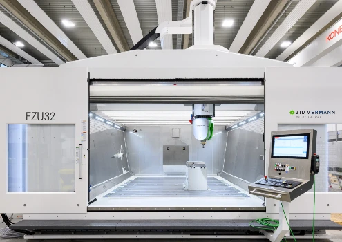 The FZU32 is a remarkably compact 5-axis gantry milling machine for machining aluminum, fiber composite materials, plastics, ureol and steel. The particularly rigid and newly developed center lead portal enables us to meet the ever growing requirements in the model and mold making industry. The thermo-symmetrical construction makes the FZU32 less susceptible to adverse ambient conditions.